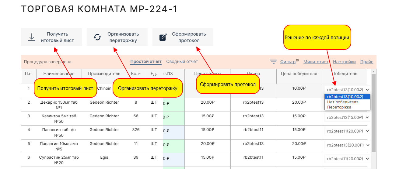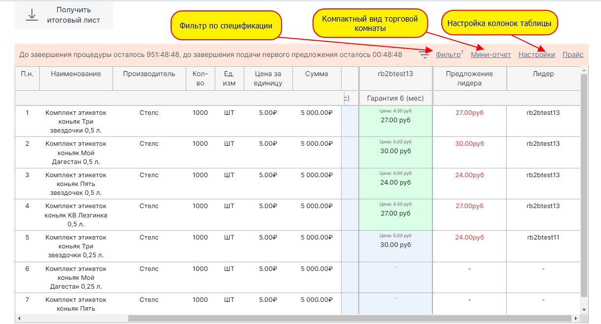 отчет (по каждой позиции: цена лидера, лидер, цена